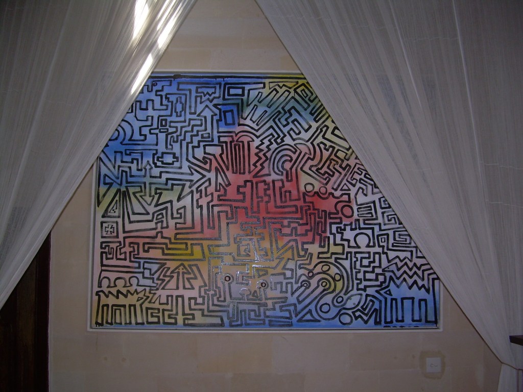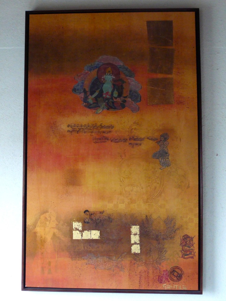 I recall he was working on absolutely gigantic installations of carved stone walls and huge pieces of installation art. It was all very impressive and he was definitely in the mix on the island for sure, a well known artist. I was relatively young at the time with limited funds but I was able to secure a couple large pieces of mixed-media art from him that I love as they remind me of Buddha dreamscapes. I believe he has since experimented with more modern forms and music. You can check him out at https://www.gentilefineart.com/ and Instagram. I have included some pictures I have from that time as well as a large Batik that I picked up from somewhere random. I think Pablo framed it for me and had it shipped with the rest of his art as the cost of doing this in Bali was advantageous at the time.